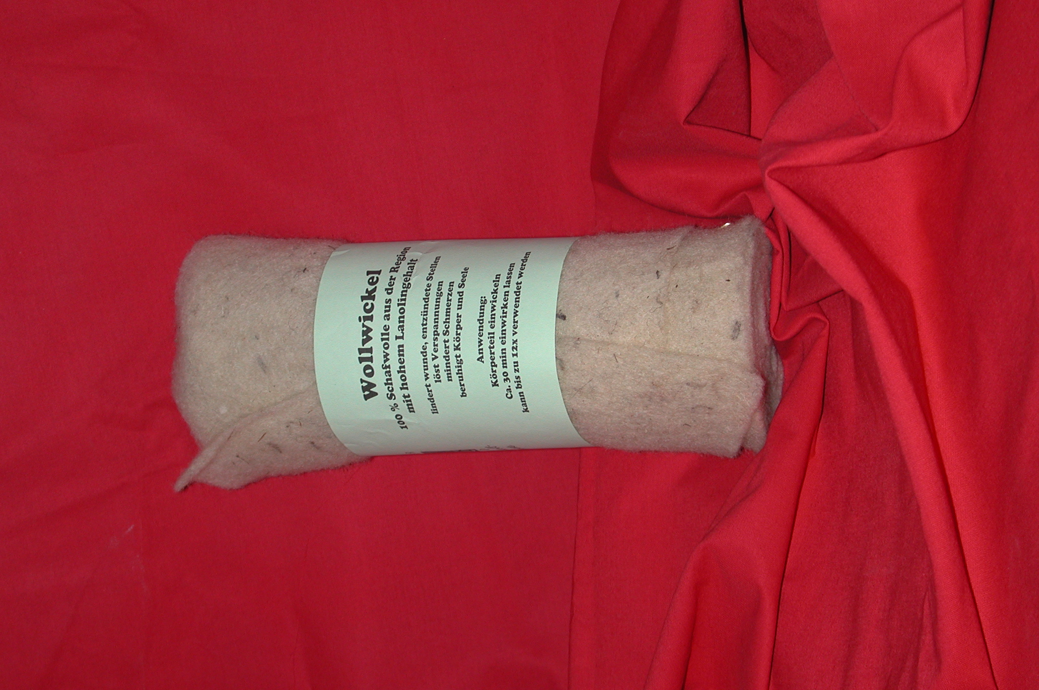 Der Wollewickel ist einfach zu handhaben. Wie ein Verband wird er direkt um die schmerzende Stelle gewickelt (am besten über Nacht).