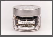 Flache dekorative Glasdose (175g) mit Schraubverschluss und silbernen Metalldeckel