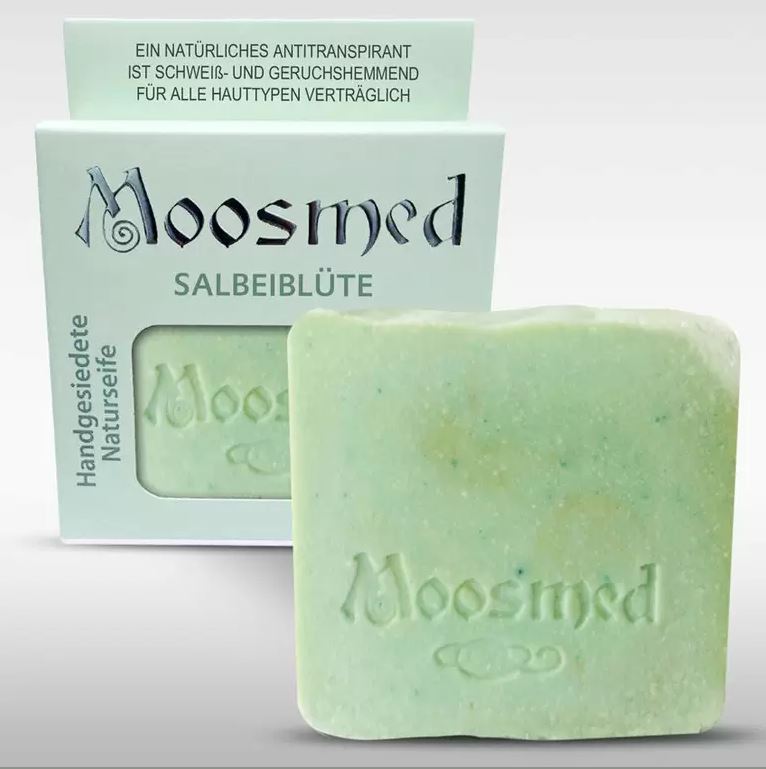 MOOSMED, Salbei DEODORANT-Seife sehr zu empfehlen gegen Schweissausbrüche. Sie ist schweisshemmend. Dieses feine Deodorant-Seife ist eine Schöpfung aus erlesenen Rohstoffen, eine Wohltat auch für zarte und empfindliche Haut. Die sofort einsetzende desodorierende Effekt hält Sie für lange Zeit körperfrisch. Ideal bei warmem Wetter, warmer Kleidung, Bewegung, lebhafter Tätigkeit. Gibt Ihnen das sichere Gefühl, im Umgang mit anderen Menschen stets frisch und sympathisch zu wirken.